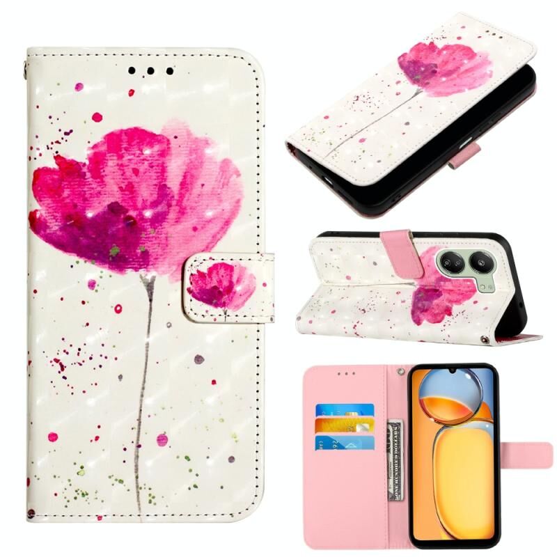 Θήκη τηλεφώνου δερμάτινη, οριζόντια αναδίπλωση, με τρισδιάστατη ζωγραφική για Xiaomi Redmi 13C (Λουλούδι)