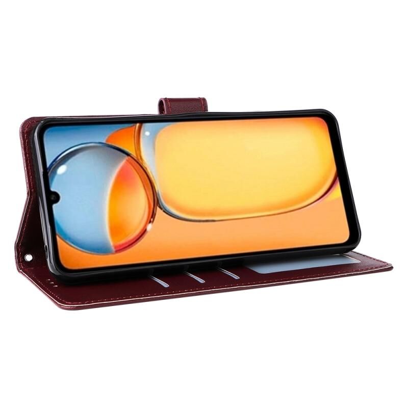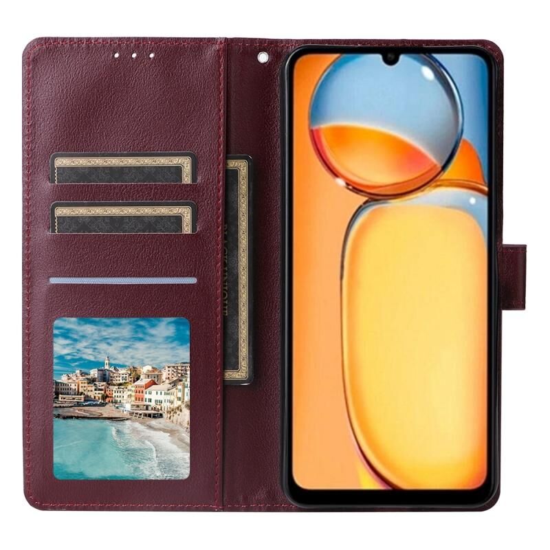 Για Xiaomi Redmi 13C 4G 3-Card Slots Πολυλειτουργική δερμάτινη θήκη τηλεφώνου (κόκκινο κρασί)