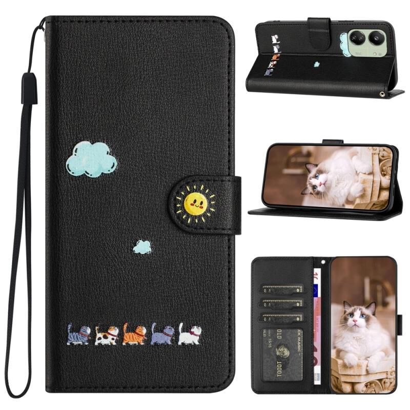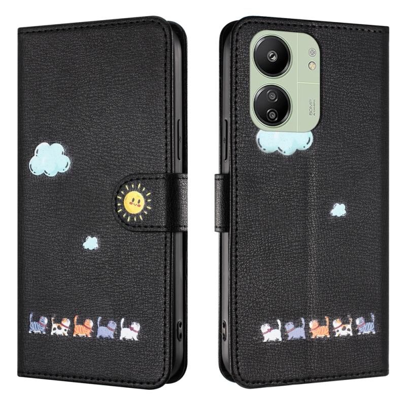 Θήκη τηλεφώνου από δέρμα με σχέδια χαριτωμένων γατών για Xiaomi Blackmi 13C 4G / 5G (Κόκκινο)