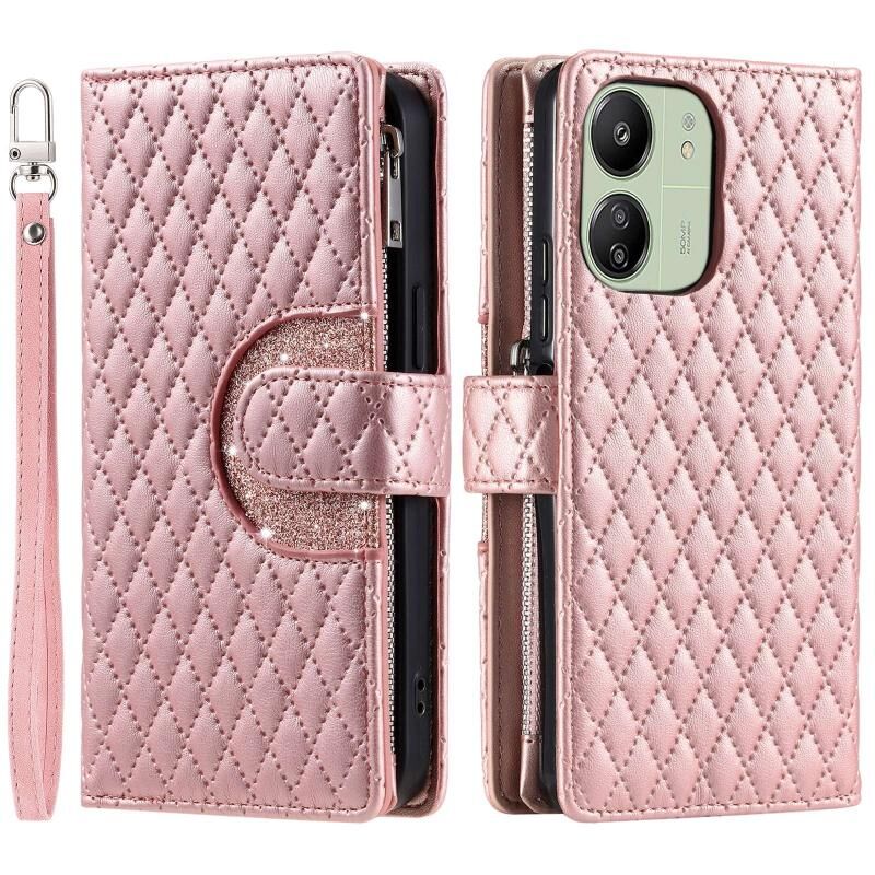 Για Xiaomi Redmi 13C 4G/5G Glitter Lattice φερμουάρ πορτοφόλι δερμάτινη θήκη τηλεφώνου (Rose Gold)