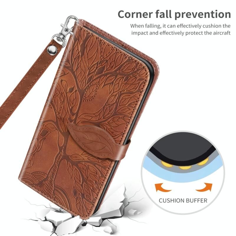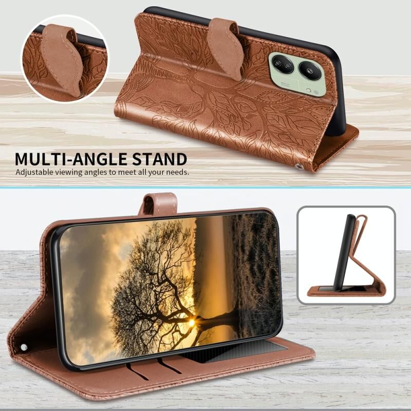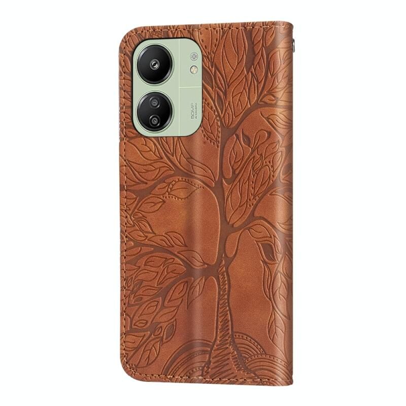 Για Xiaomi Redmi 13C 4G / 5G Life Tree ανάγλυφο μοτίβο δερμάτινη θήκη τηλεφώνου (καφέ)