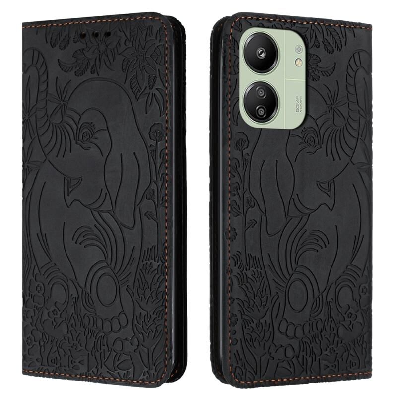 Θήκη τηλεφώνου από δέρμα με ανάγλυφο σχέδιο ρετρό ελέφαντα για Xiaomi Redmi 13C 4G / 5G (Μπλε)