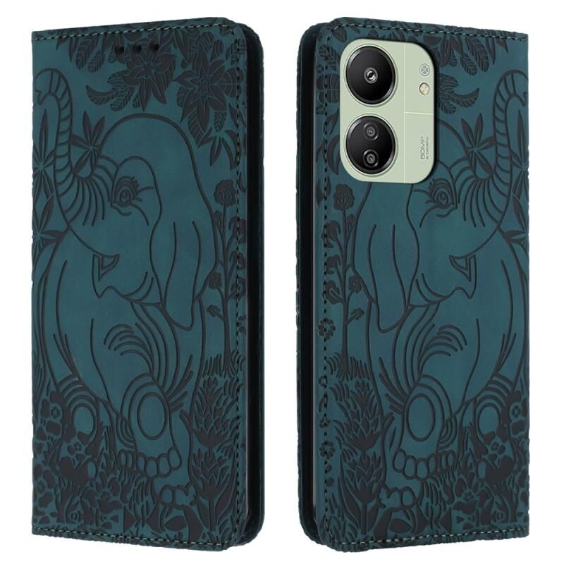 Θήκη τηλεφώνου από δέρμα με ανάγλυφο σχέδιο ρετρό ελέφαντα για Xiaomi Redmi 13C 4G / 5G (Μπλε)