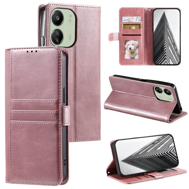 Για Xiaomi Redmi 13C 4G/5G Απλή 6-Card πορτοφόλι δερμάτινη θήκη τηλεφώνου (Ροζ χρυσός)