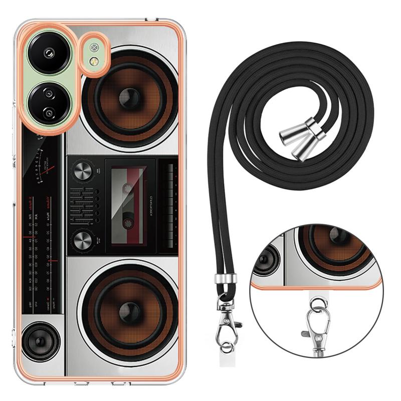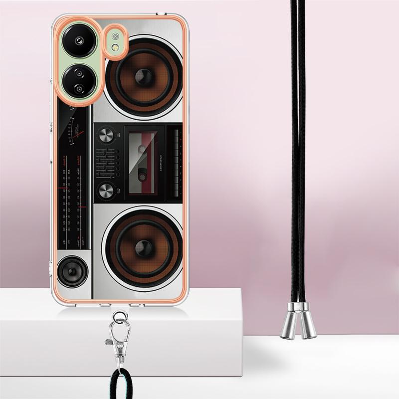 Θήκη Xiaomi Redmi 13C 4G με Επιμετάλλωση & Λουρί (Ρετρό Ραδιόφωνο)