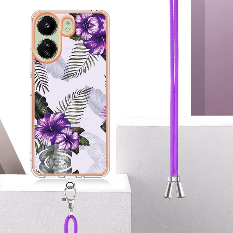 Θήκη τηλεφώνου Xiaomi Redmi 13C 4G με επιμετάλλωση IMD TPU με κορδόνι (Μωβ Λουλούδι)