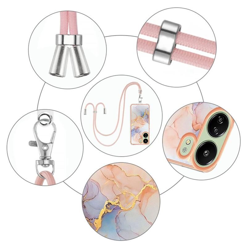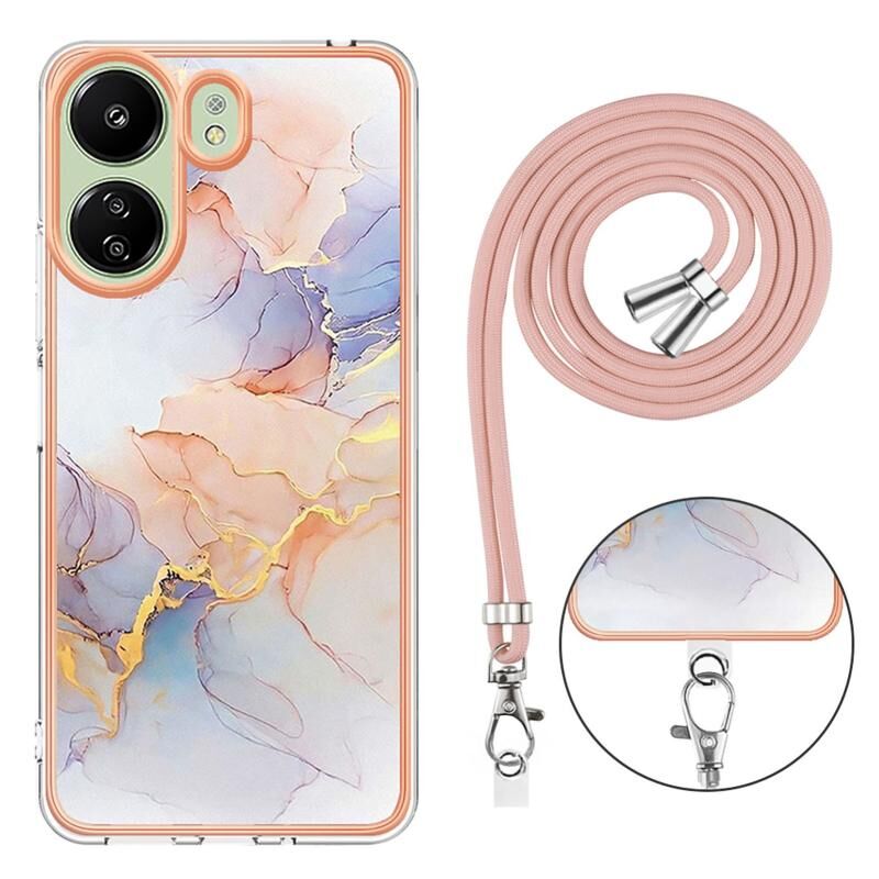 Θήκη τηλεφώνου Xiaomi Redmi 13C 4G με επιμετάλλωση IMD TPU με κορδόνι (Λευκό Μάρμαρο)