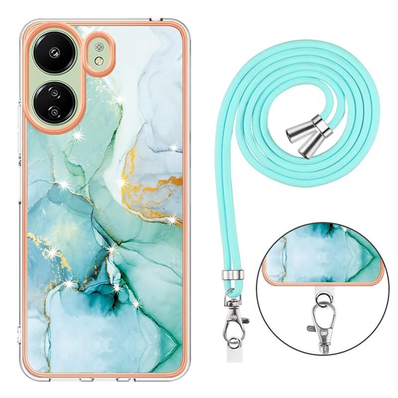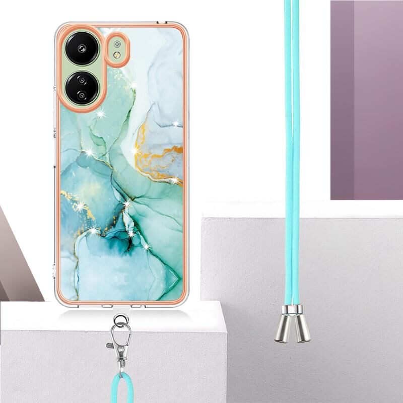 Θήκη τηλεφώνου για Xiaomi Redmi 13C 4G με επιμετάλλωση, σχέδιο μάρμαρου, διπλής όψης IMD με κορδόνι (Μωβ 001)