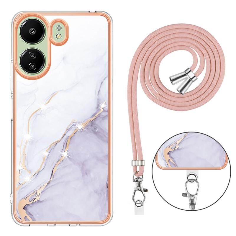 Θήκη τηλεφώνου για Xiaomi Redmi 13C 4G με επιμετάλλωση, σχέδιο μάρμαρου, διπλής όψης IMD με κορδόνι (Μωβ 001)