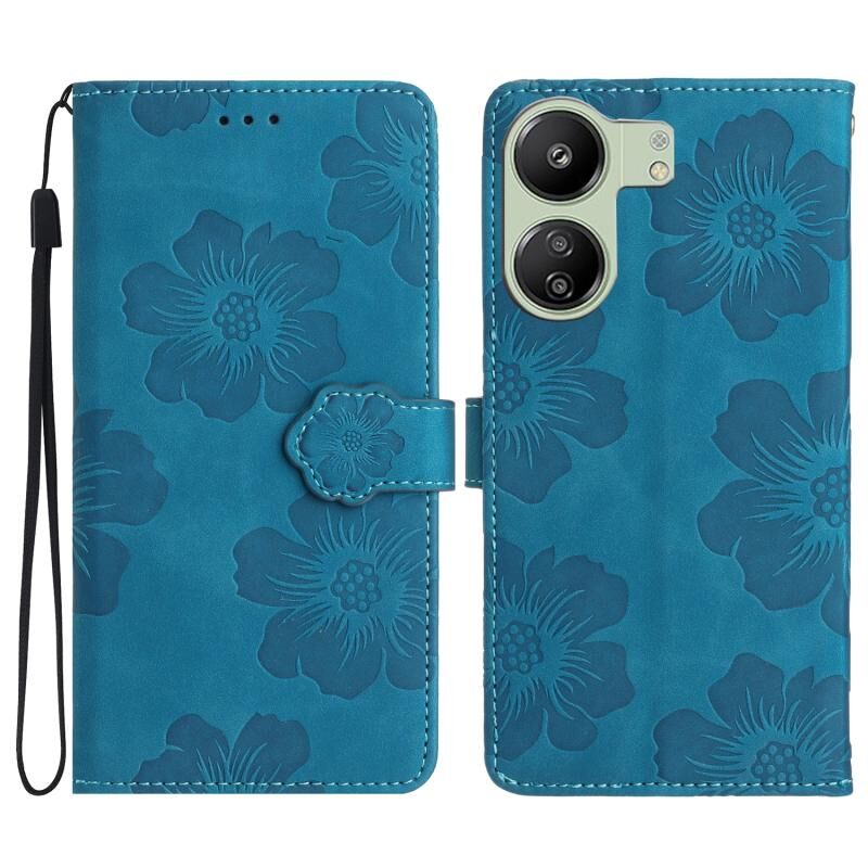 Για Xiaomi Redmi 13C 4G λουλούδι ανάγλυφο μοτίβο δερμάτινη θήκη τηλεφώνου (μπλε)