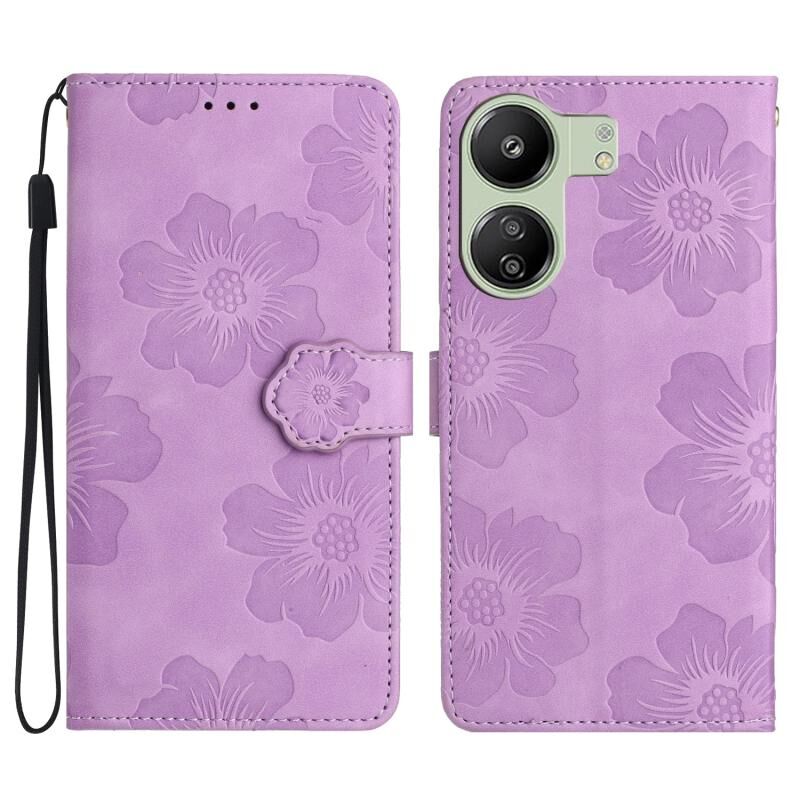 Για Xiaomi Redmi 13C 4G λουλούδι ανάγλυφο μοτίβο δερμάτινη θήκη τηλεφώνου (μωβ)