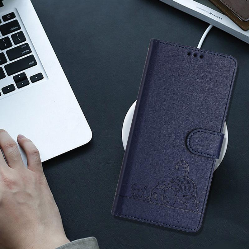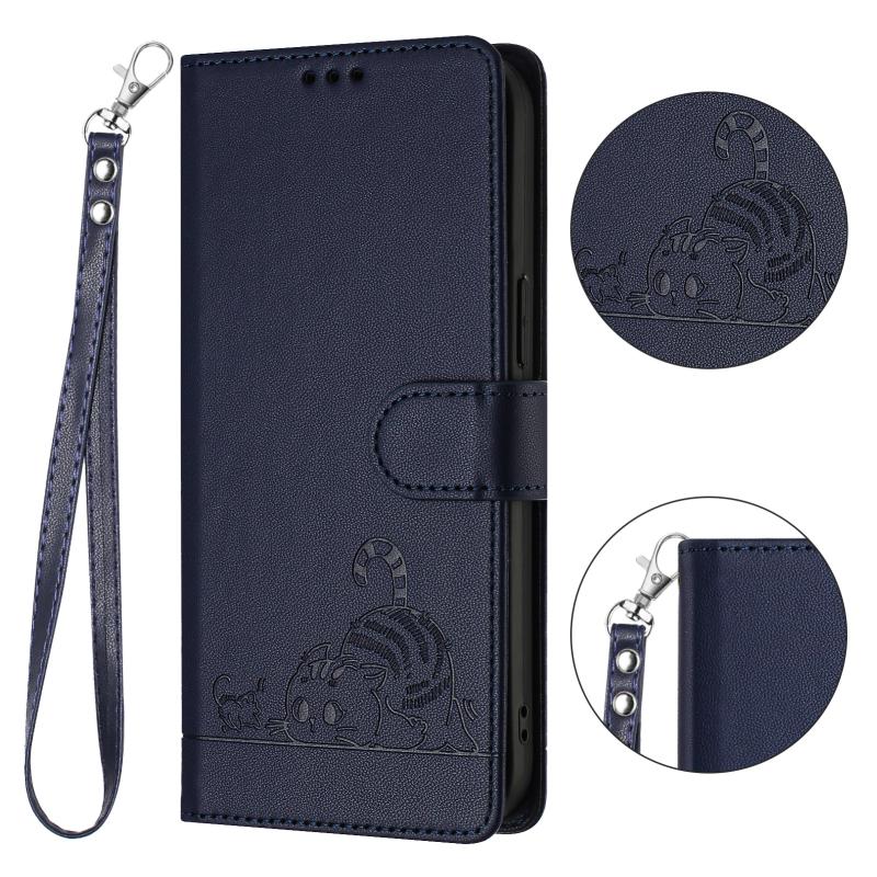 Για Xiaomi Redmi 13C 4G Γατάκι ανάγλυφο σχέδιο με λουρί καρπού (Μπλε)