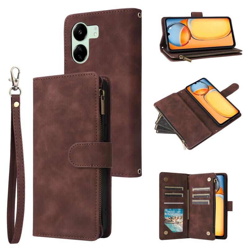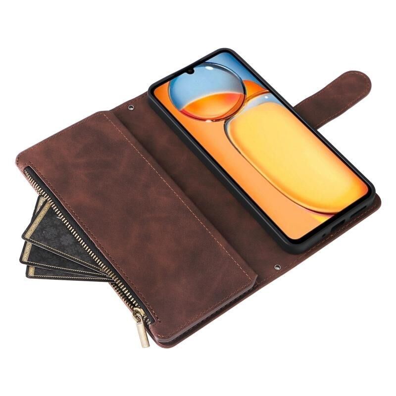 Για Xiaomi Redmi 13C 4G Παγκόσμια πολυλειτουργική παγωμένο φερμουάρ πορτοφόλι δερμάτινη θήκη τηλεφώνου (Καφέ)