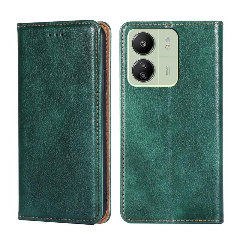 Για Xiaomi Redmi 13C 4G γυαλιστερό λάδι στερεό χρώμα μαγνητική δερμάτινη θήκη τηλεφώνου (πράσινο)