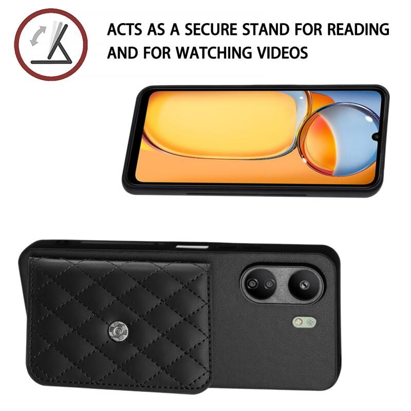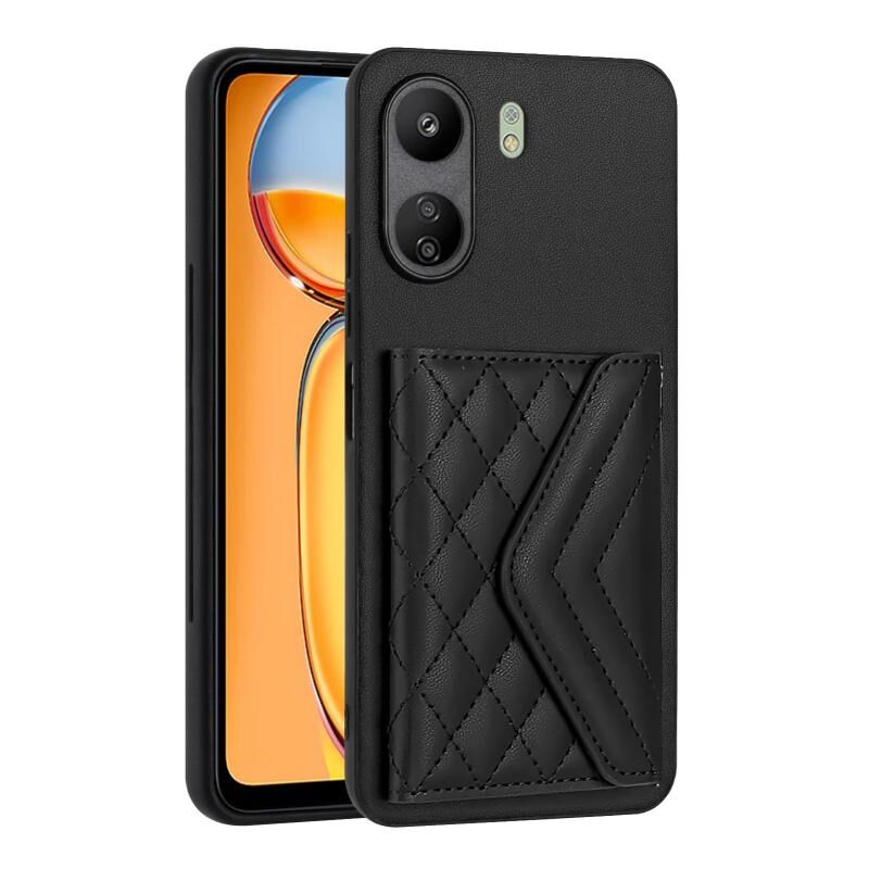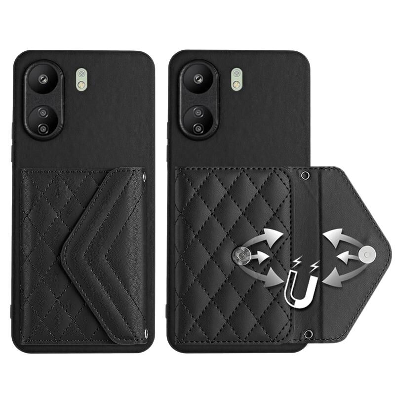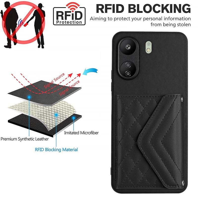Για Xiaomi Redmi 13C 4G / Poco C65 Rhombic υφή κάρτα τσάντα RFID υπόθεση τηλεφώνου (Μαύρο)