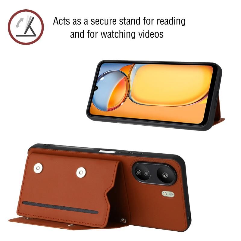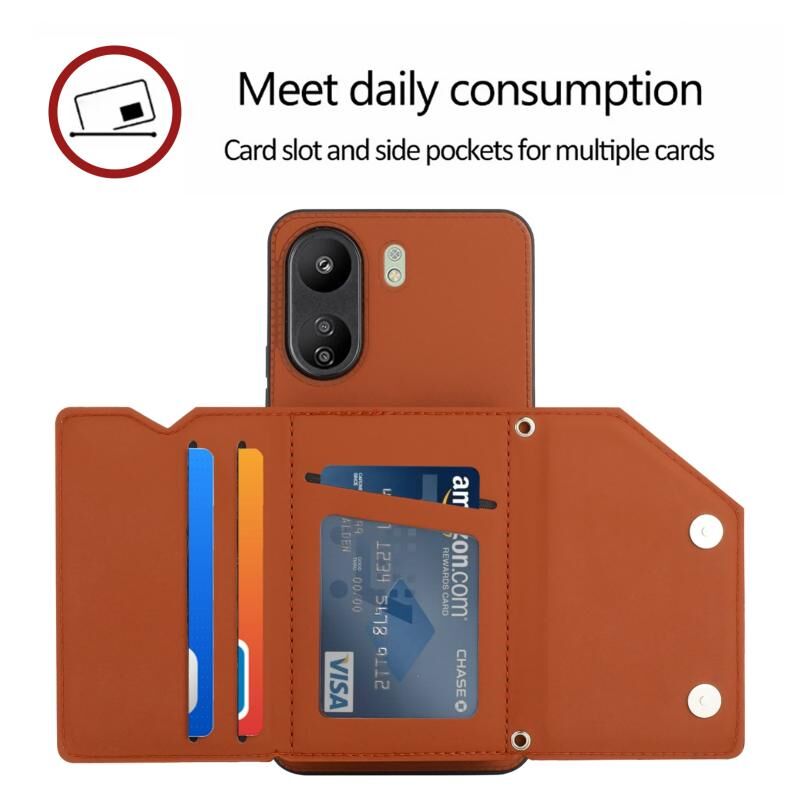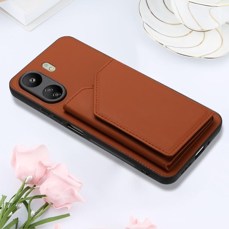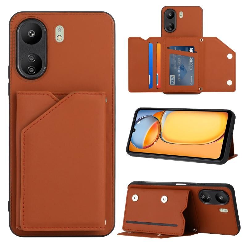 Για Xiaomi Redmi 13C 4G / Poco C65 Skin Feel PU + TPU + PC Card Slots υπόθεση τηλεφώνου (καφέ)