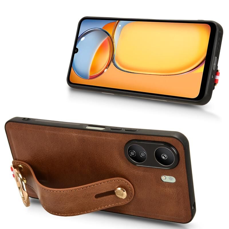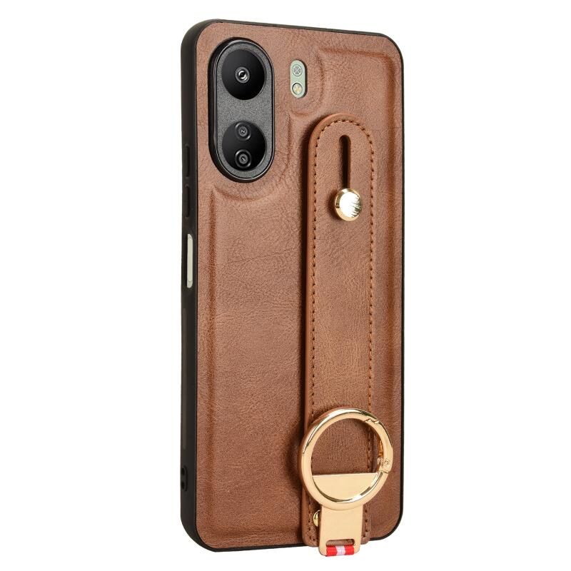 Για Xiaomi Redmi 13C 4G/Poco C65 Wristband δέρμα πίσω υπόθεση τηλεφώνου (καφέ)