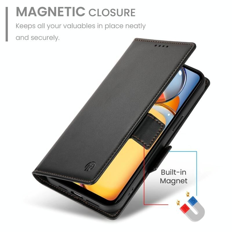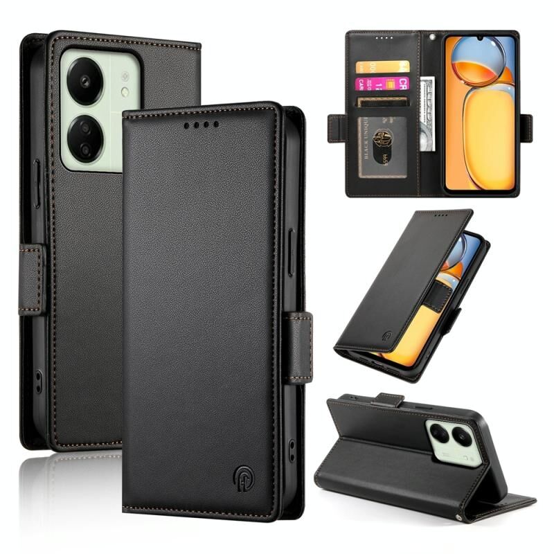 Για Xiaomi Redmi 13C 4G / Redmi 13R Πλευρική πόρπη μαγνητική παγωμένη δερμάτινη θήκη τηλεφώνου (μαύρο)
