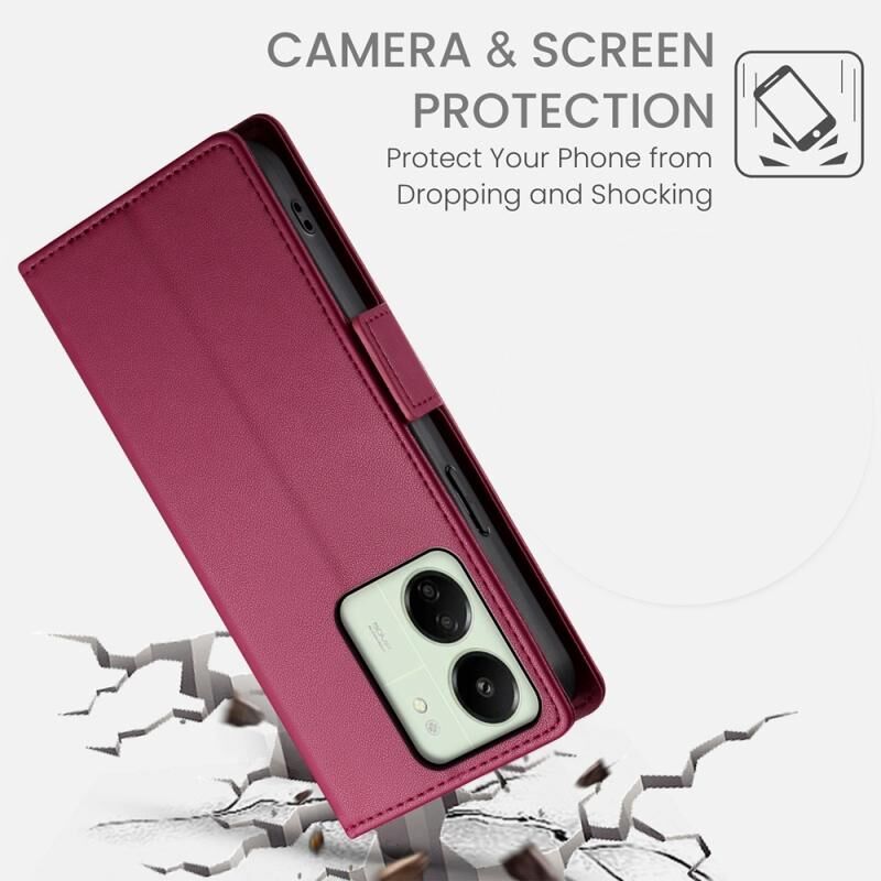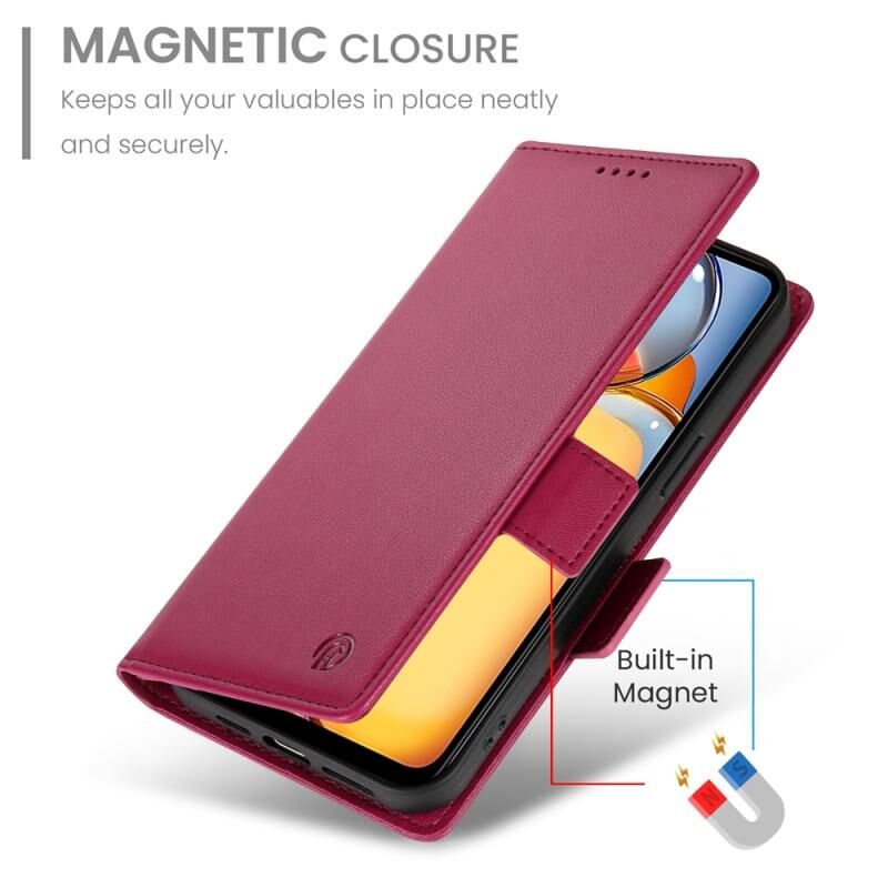 Για Xiaomi Redmi 13C 4G / Redmi 13R Side πόρπη μαγνητική παγωμένη δερμάτινη θήκη τηλεφώνου (κόκκινο κρασί)