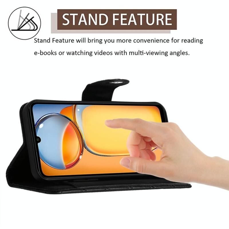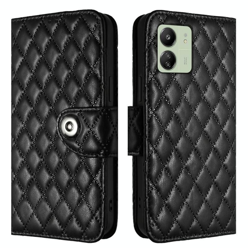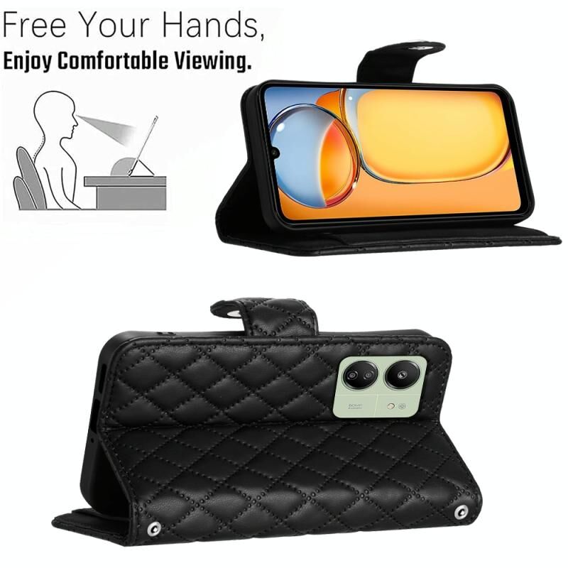 Για Xiaomi Redmi 13C 4G Rhombic υφή Flip δερμάτινη θήκη τηλεφώνου με κορδόνι (μαύρο)