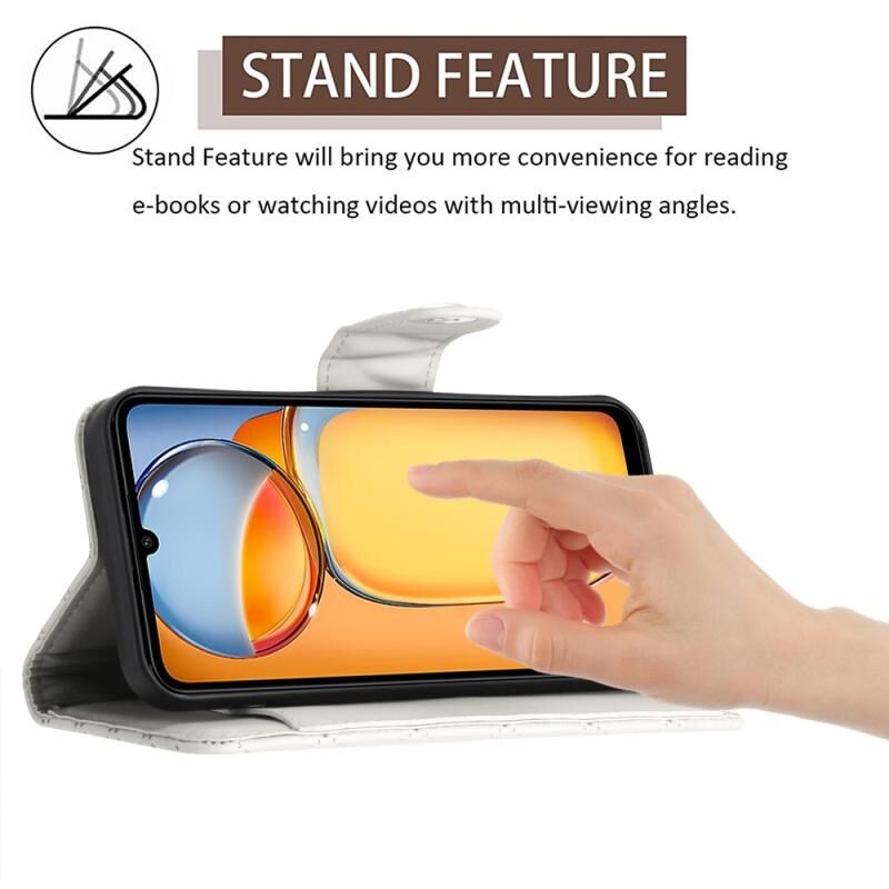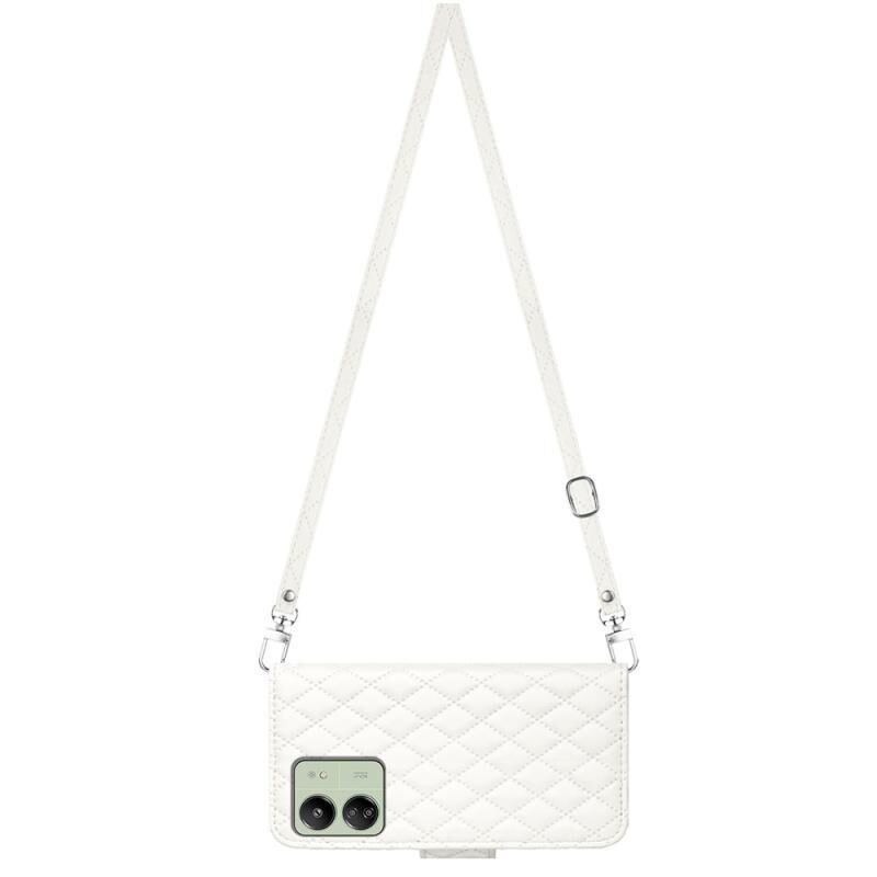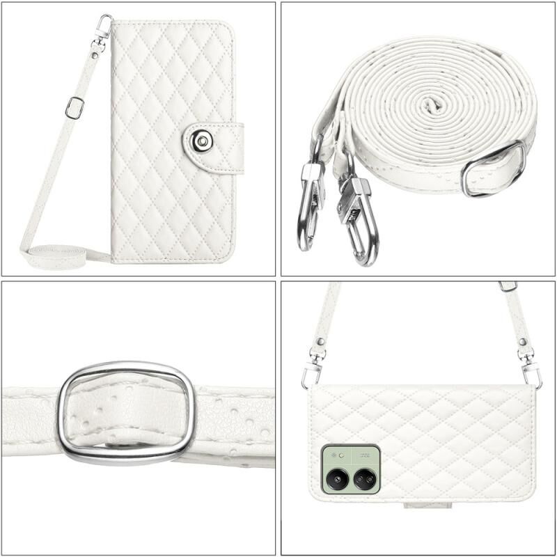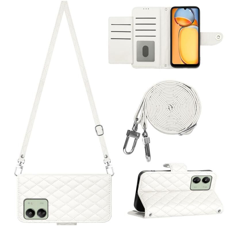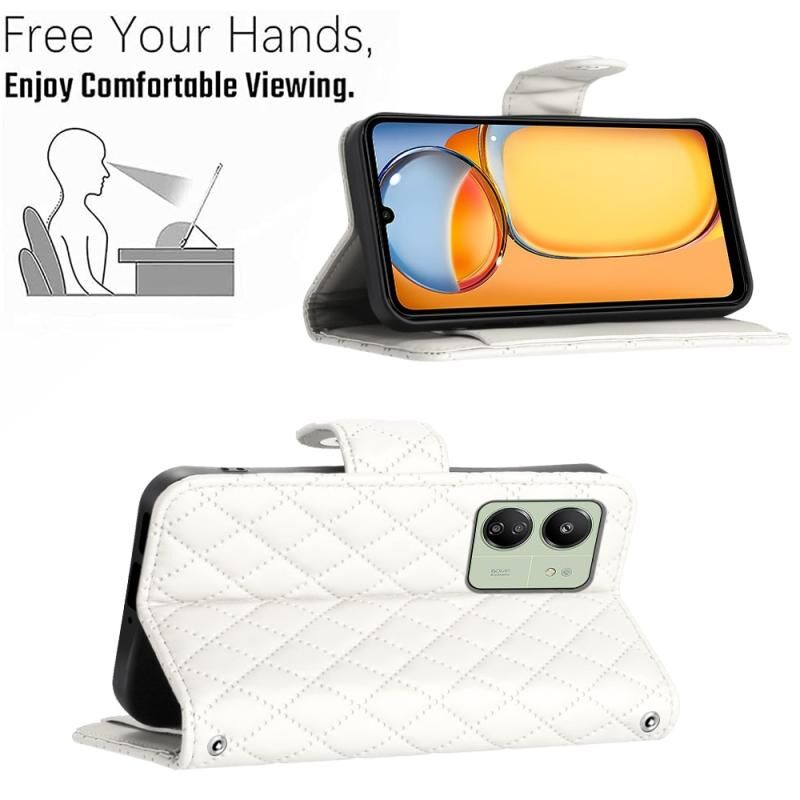 Για Xiaomi Redmi 13C 4G Rhombic υφή Flip δέρμα τηλέφωνο υπόθεση με μακρύ κορδόνι (λευκό)