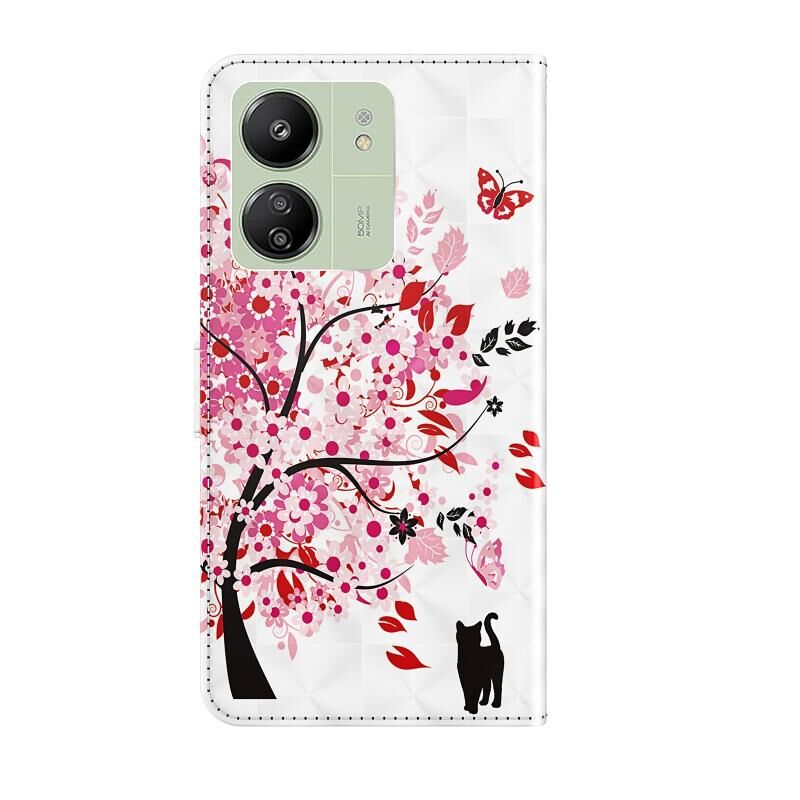 Θήκη τηλεφώνου από δέρμα με σχέδιο 3D και αναδιπλούμενο μηχανισμό για Xiaomi Redmi 13C 5G / 4G (Γάτα κάτω από το δέντρο)