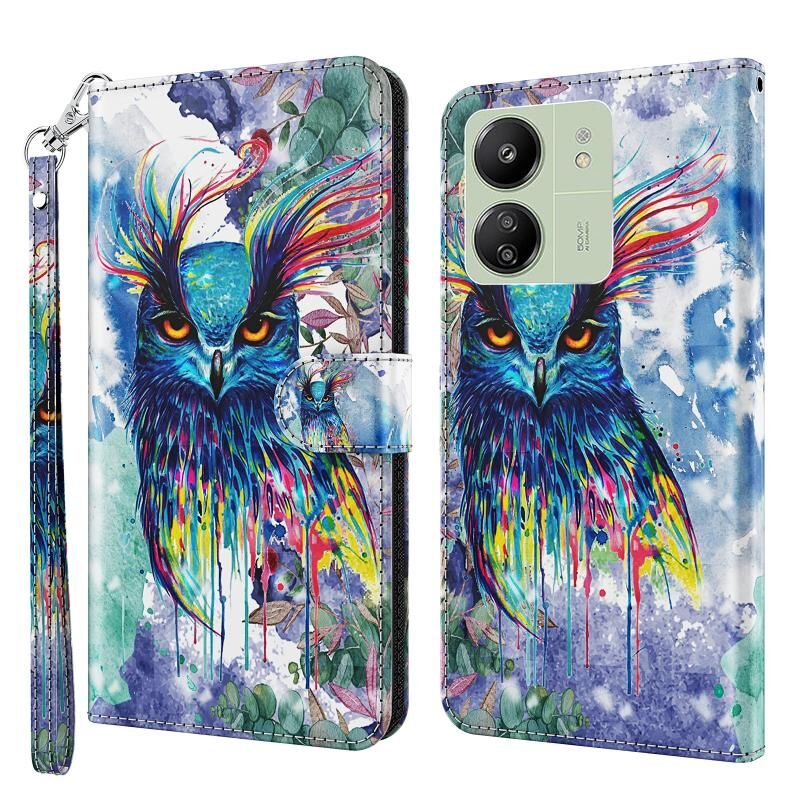 Θήκη τηλεφώνου από δέρμα με σχέδιο 3D ζωγραφικής για Xiaomi Redmi 13C 5G / 4G (Ακουαρέλα Γεράκι)