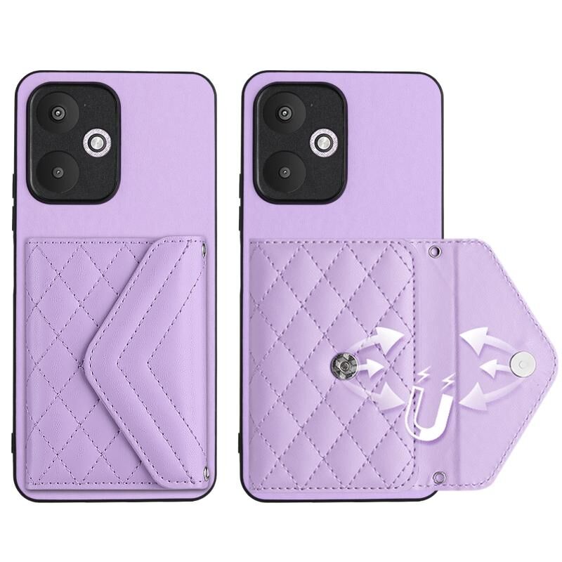 Για Xiaomi Redmi 13C 5G / Redmi 13R Rhombic υφή κάρτα τσάντα RFID υπόθεση τηλεφώνου (Light Purple)