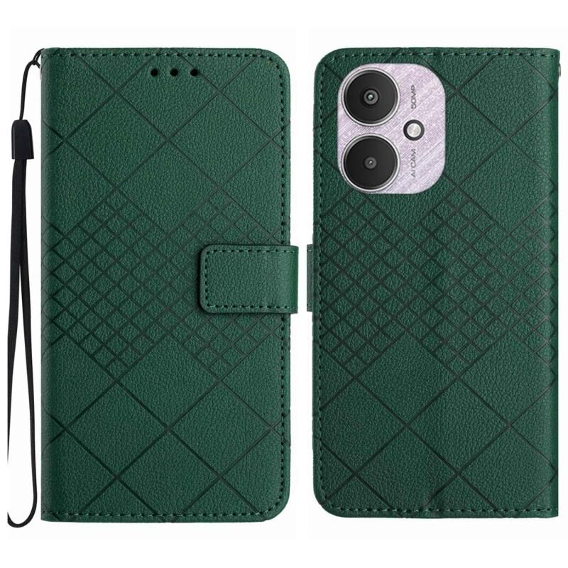 Για Xiaomi Redmi 13C 5G Rhombic Grid υφή δερμάτινη θήκη τηλεφώνου (πράσινο)