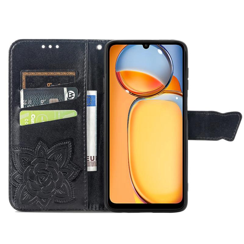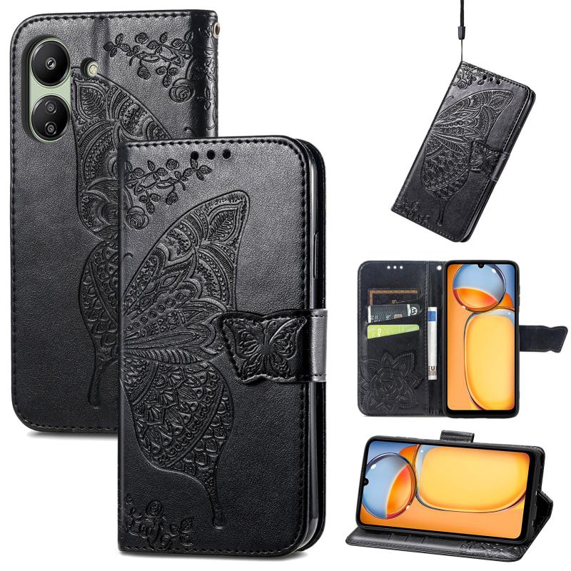 For Xiaomi Redmi 13C Butterfly Love Flower Embossed Leather Phone Case(Black)