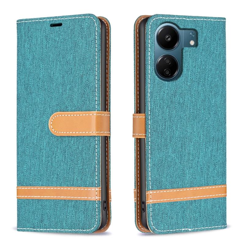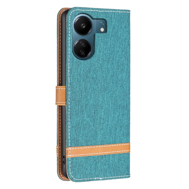 Θήκη τηλεφώνου Xiaomi Redmi 13C με υφή denim και δερμάτινη υφή σε μπλοκ χρωμάτων (πράσινο)