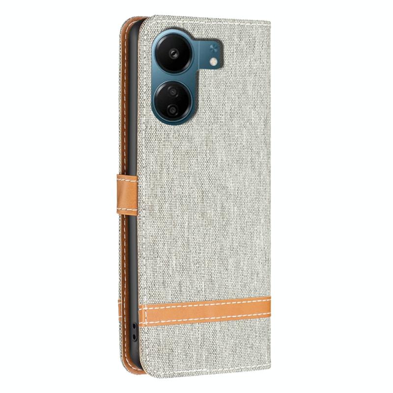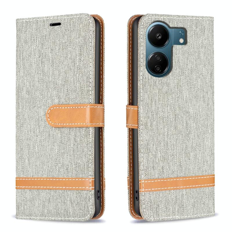 Θήκη τηλεφώνου Xiaomi Redmi 13C με υφή denim και δερμάτινη υφή σε μπλοκ χρωμάτων (Γκρι)