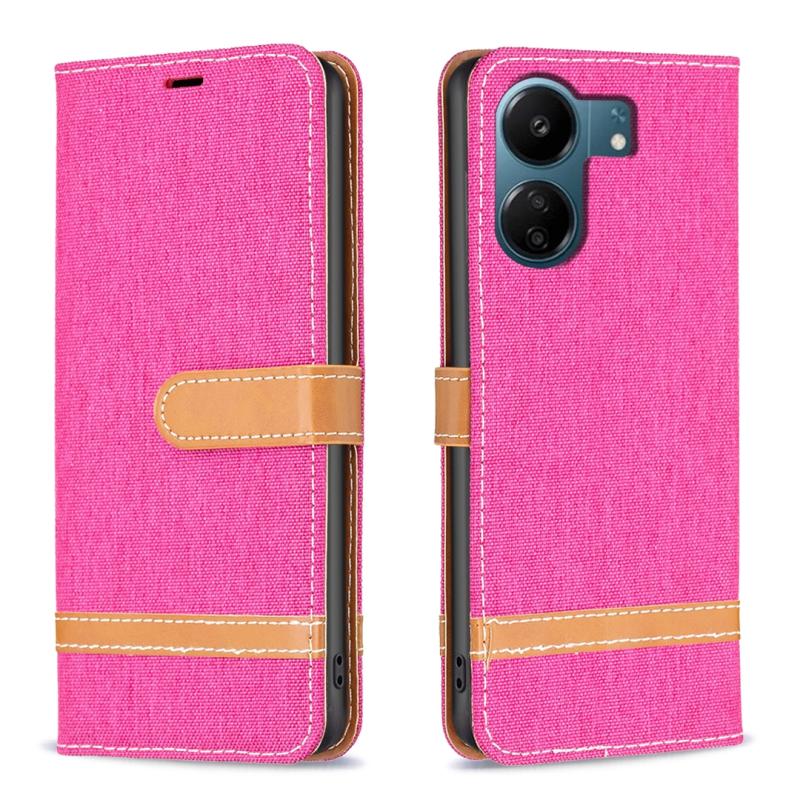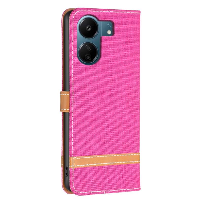 Θήκη τηλεφώνου Xiaomi Redmi 13C με υφή denim και δερμάτινη υφή σε μπλοκ χρωμάτων (Ροζέ κόκκινο)