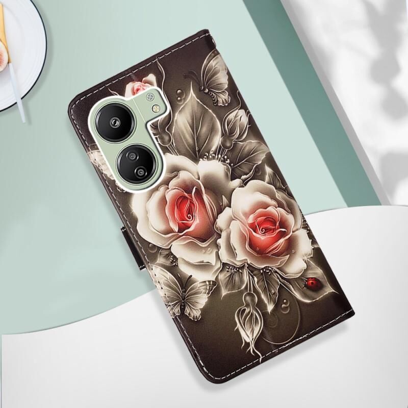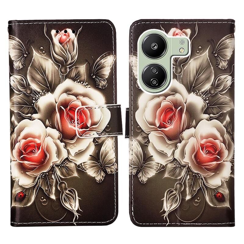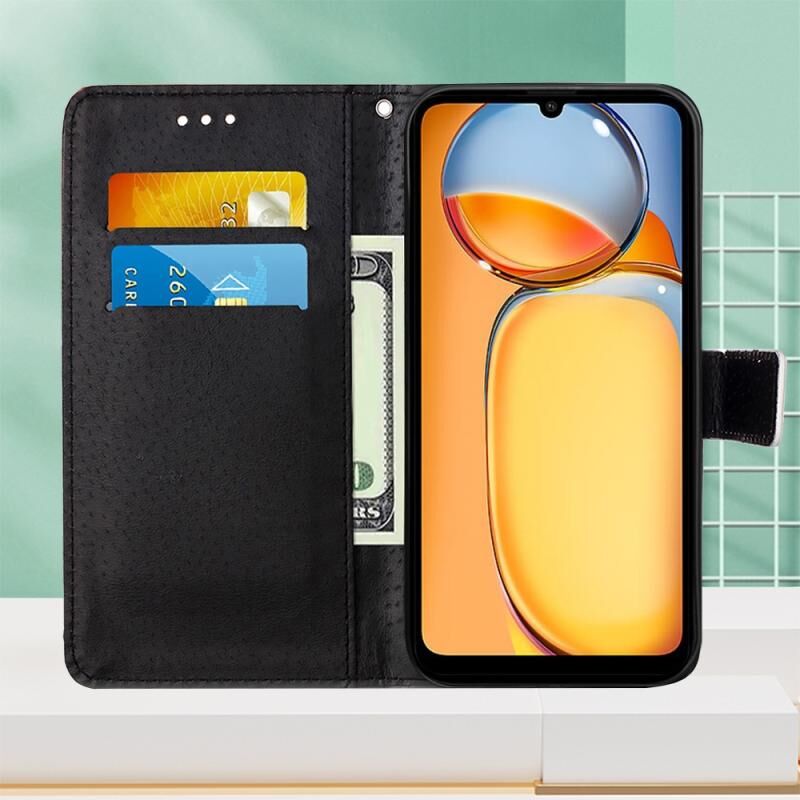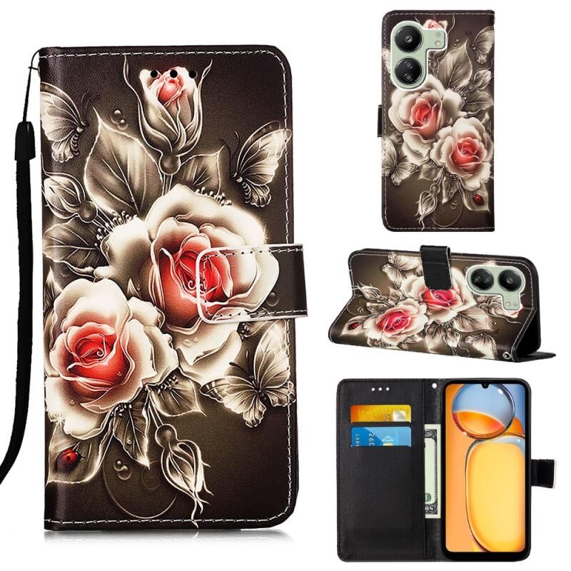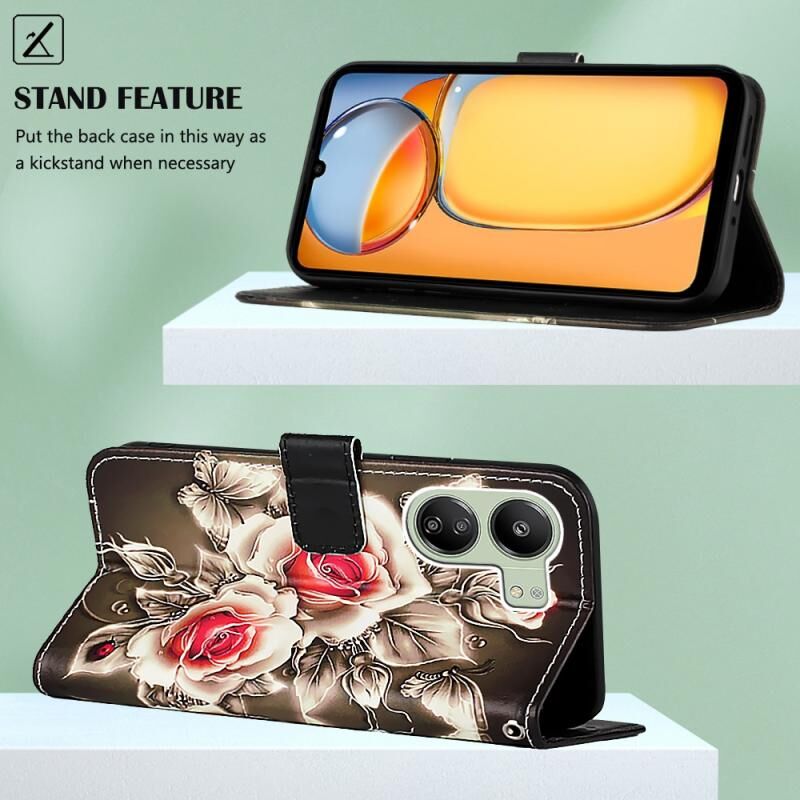 Θήκη τηλεφώνου από δέρμα με απλή ύφανση και πολύχρωμο σχέδιο για Xiaomi Redmi 13C (Τίγρη σε ασπρόμαυρο)