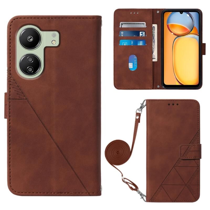 Για Xiaomi Redmi 13C Crossbody 3D ανάγλυφο Flip δερμάτινη θήκη τηλεφώνου (καφέ)