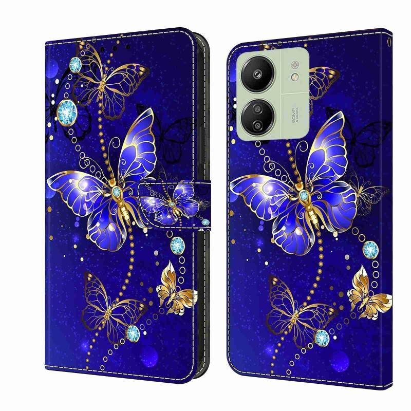 Θήκη κινητού τηλεφώνου από δέρμα, αντικραδασμική, προστατευτική 3D κρυστάλλου για Xiaomi Redmi 13C (Πέταλα πεταλούδας με διαμάντια)