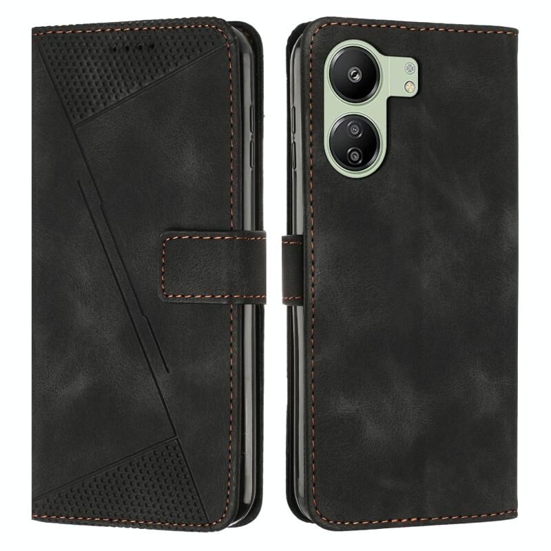 Για Xiaomi Redmi 13C Dream Τρίγωνο δερμάτινη θήκη τηλεφώνου με κορδόνι (Μαύρο)