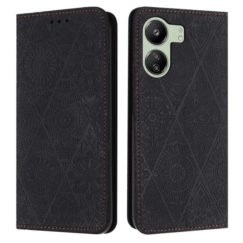 Για Xiaomi Redmi 13C Ethnic ανάγλυφο Adsorption δερμάτινη θήκη τηλεφώνου (Μαύρο)