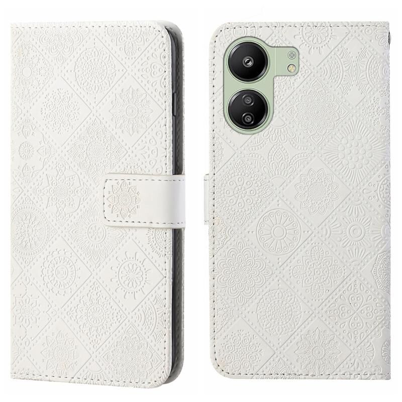 Για Xiaomi Redmi 13C Ethnic Style ανάγλυφο μοτίβο δερμάτινη θήκη τηλεφώνου (Λευκό)