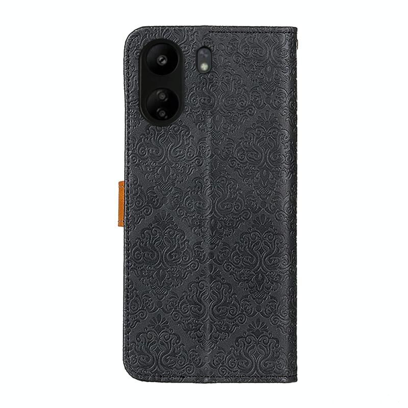 Για Xiaomi Redmi 13C Ευρωπαϊκή Floral ανάγλυφη δερμάτινη θήκη τηλεφώνου (μαύρο)