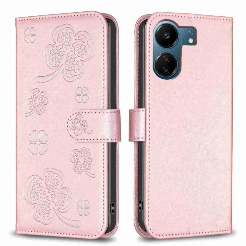 Για Xiaomi Redmi 13C Τέσσερα φύλλα ανάγλυφο δέρμα τηλέφωνο υπόθεση (ροζ)
