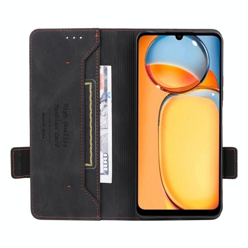 Για Xiaomi Redmi 13C Μαγνητικό κούμπωμα Δερμάτινη θήκη τηλεφώνου (Μαύρο)