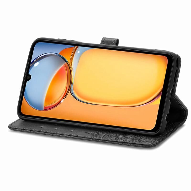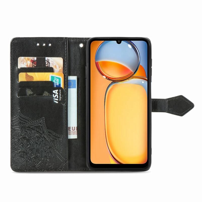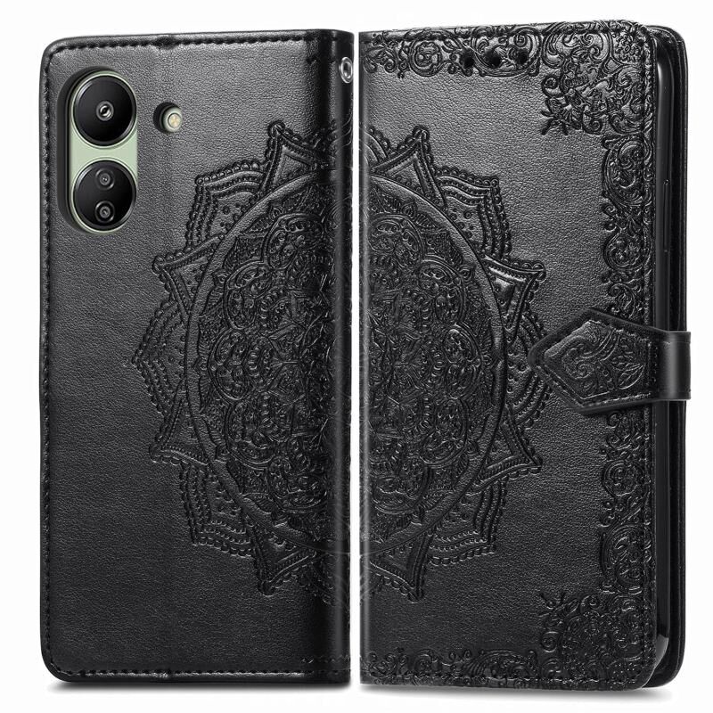 Για Xiaomi Redmi 13C Mandala λουλούδι ανάγλυφο δερμάτινη θήκη τηλεφώνου (μαύρο)