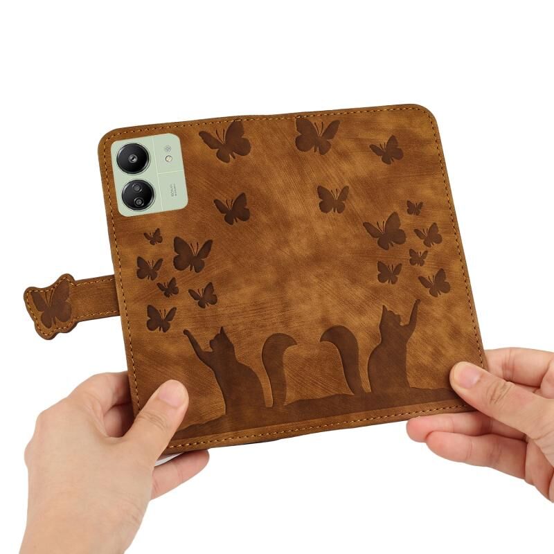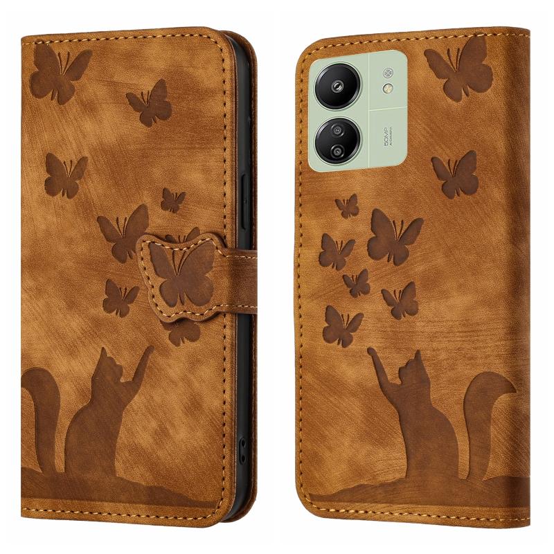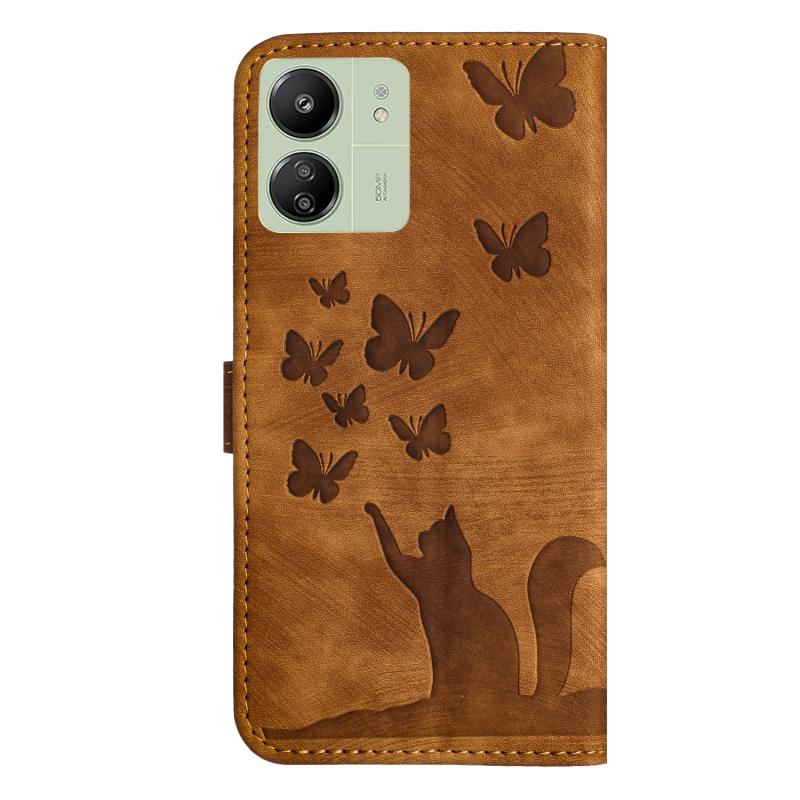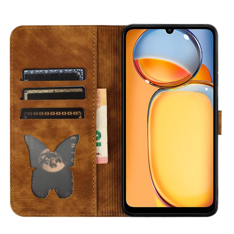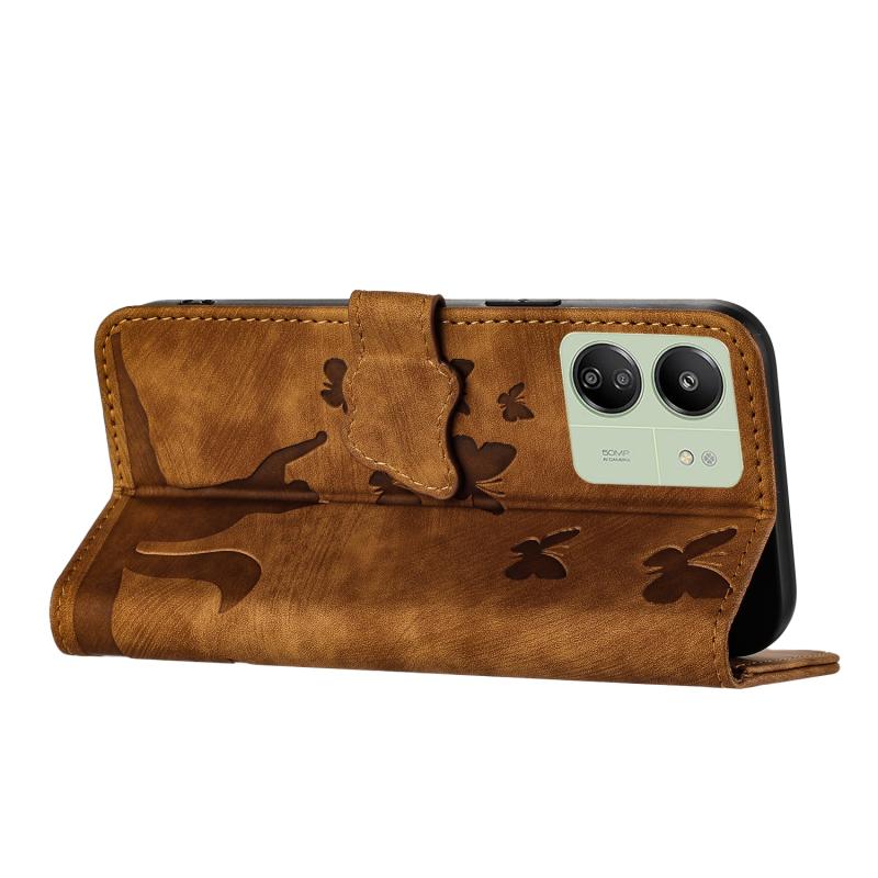 Για Xiaomi Redmi 13C / POCO C65 Θήκη Δερμάτινη με ανάγλυφο σχέδιο πεταλούδας. (Καφέ)