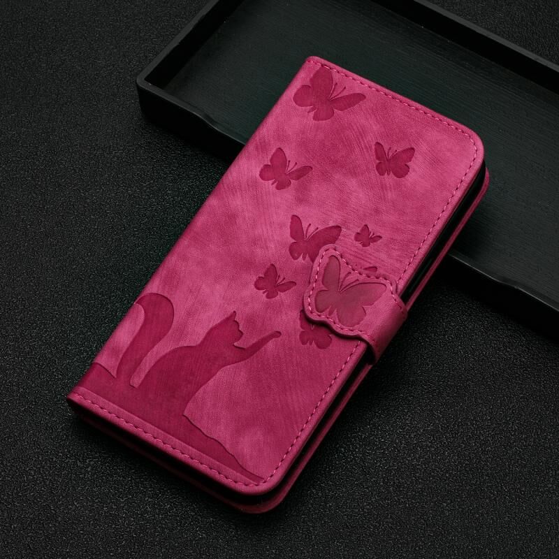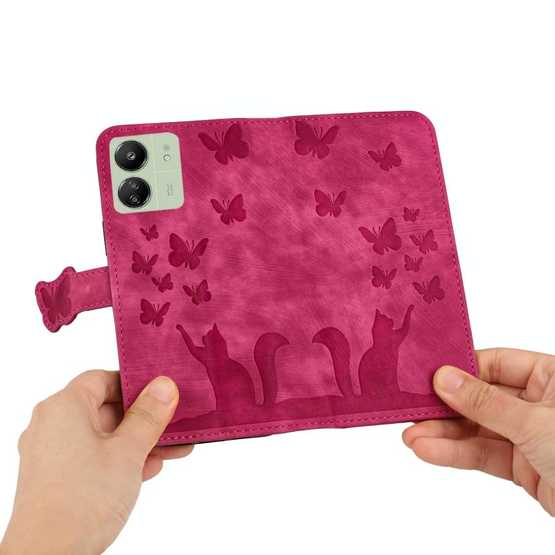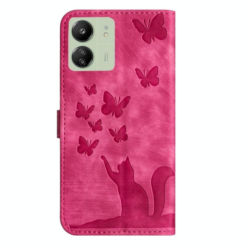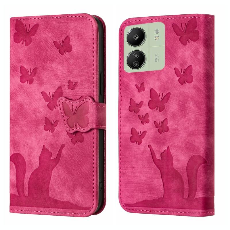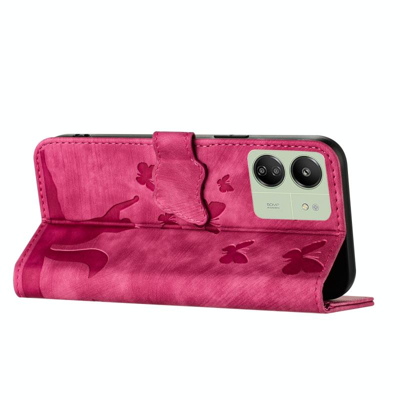 Για Xiaomi Redmi 13C / POCO C65 Θήκη Δερμάτινη με ανάγλυφο σχέδιο πεταλούδας. (Κόκκινο)