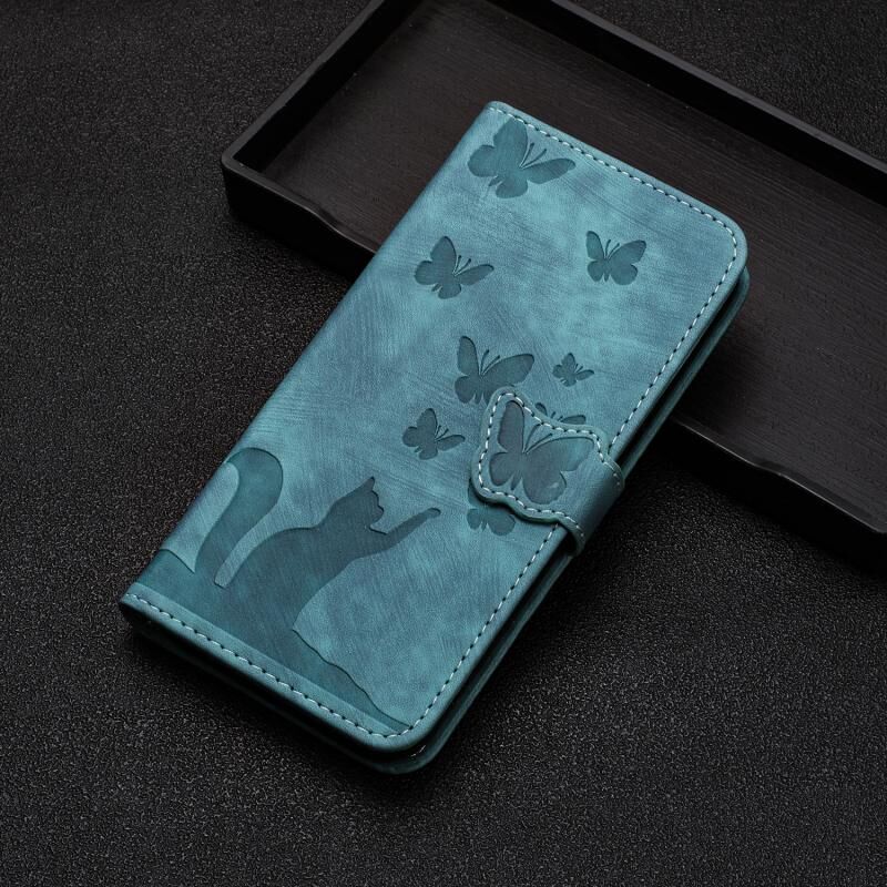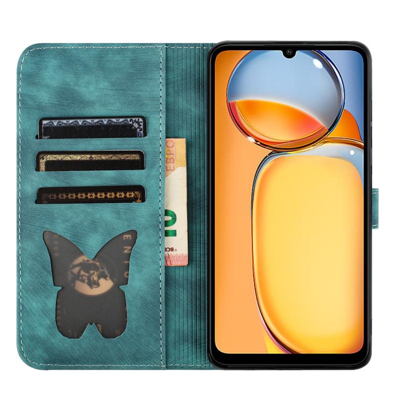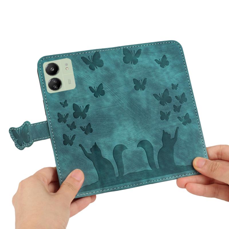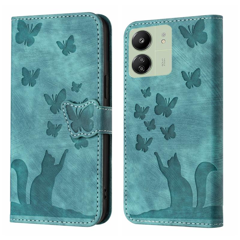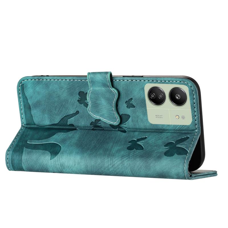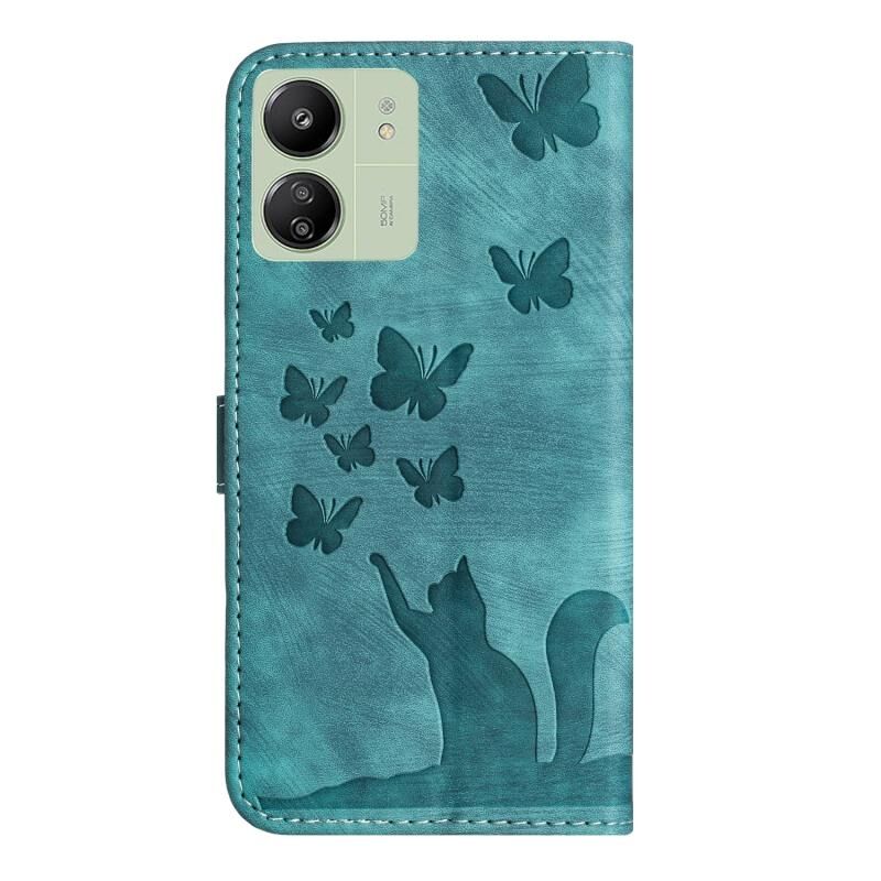 Θήκη δερμάτινη flip με σχέδιο πεταλούδας για Xiaomi Redmi 13C / POCO C65 (Wathet)