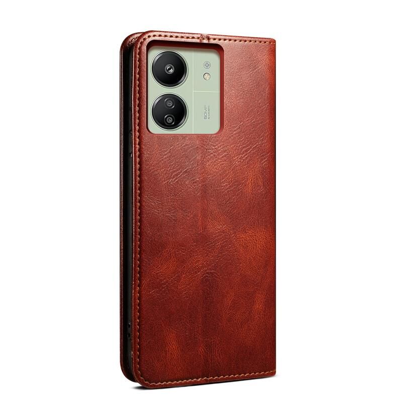 Για Xiaomi Redmi 13C / Poco C65 Oil Wax Crazy Horse Υφή δερμάτινη θήκη τηλεφώνου (καφέ)