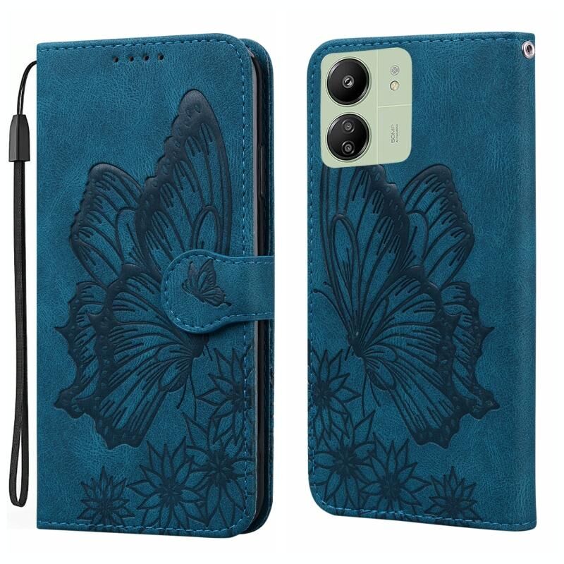 Θήκη τηλεφώνου δερμάτινη οριζόντιας αναδίπλωσης για Xiaomi Redmi 13C / POCO C65 με ανάγλυφο σχέδιο πεταλούδων και υφή retro (Μαύρο)
