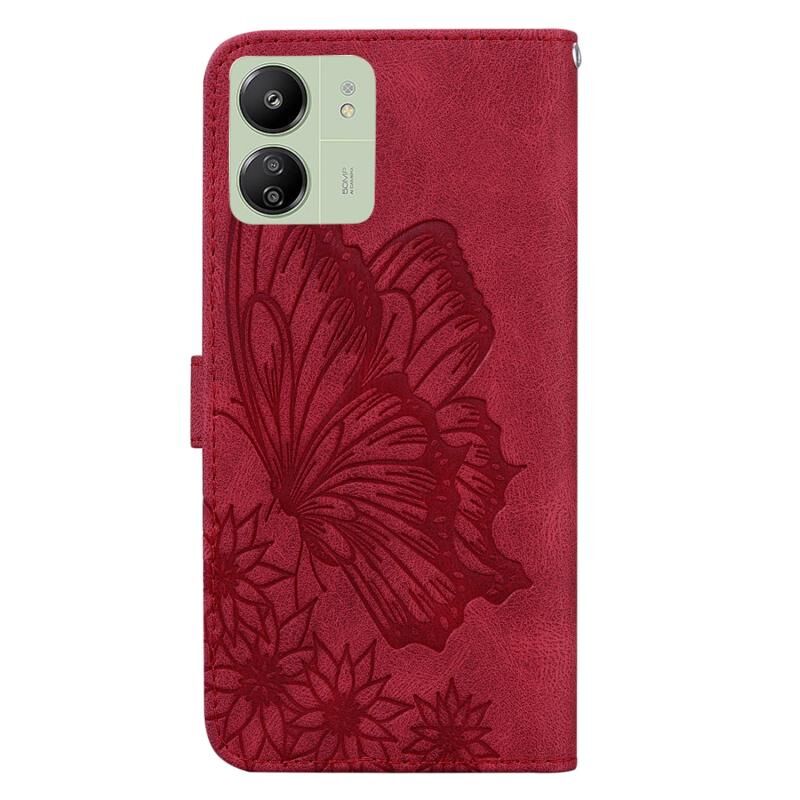 Θήκη τηλεφώνου δερμάτινη οριζόντιας αναδίπλωσης για Xiaomi Redmi 13C / POCO C65 με ανάγλυφο σχέδιο πεταλούδων και υφή retro (Μαύρο)