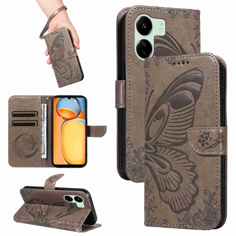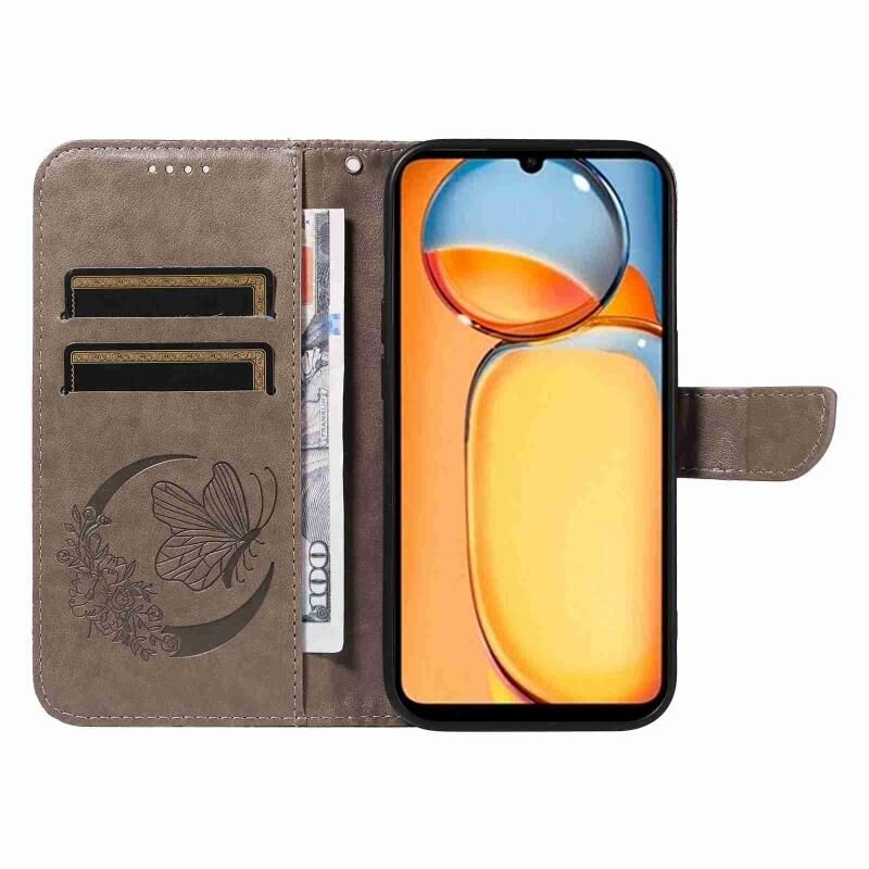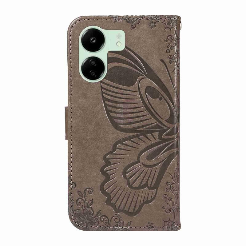 Θήκη τηλεφώνου από δέρμα με ανάγλυφο σχέδιο πεταλούδας Swallowtail για Xiaomi Greymi 13C / Poco C65 (Κόκκινο)